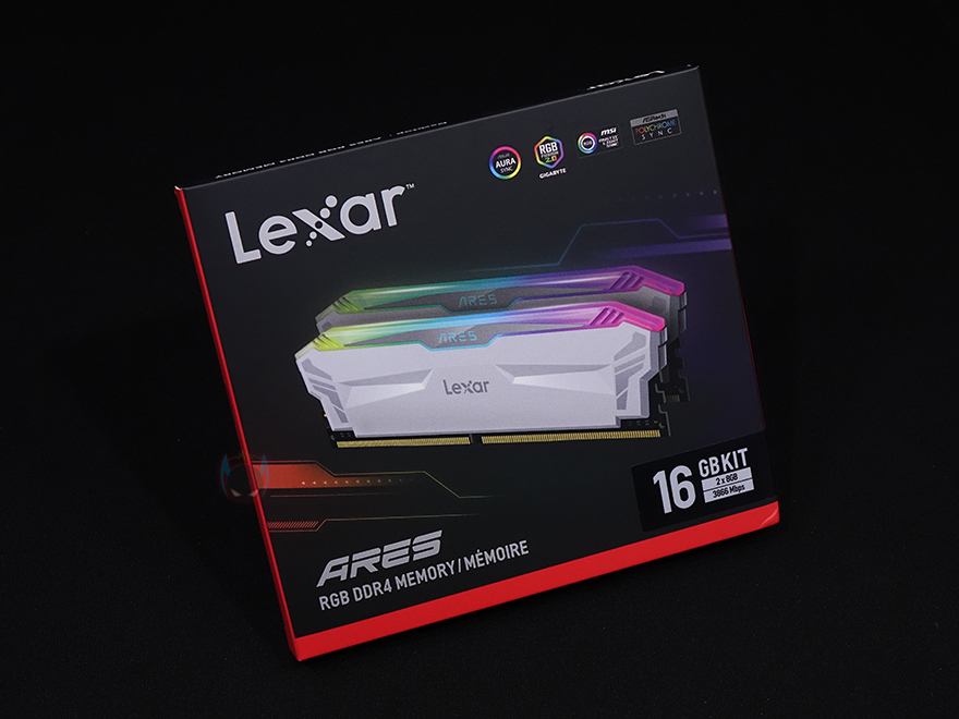 제품팩키지는 박스형태로 전면에는 제품 이미지를 담고 있어서, 구입 전에 미리 디자인을 확인할 수 있습니다. 그리고, 모델명과 함께 용량과 클럭표시도 확인할 수 있고, RGB RAM인만큼 메인보드 제조사들이 지원하는 RGB Sync 연동 지원표시도 확인할 수 있죠. 박스후면에는 방금 언급한 메인보드 제조사들의 RGB Sync외에도 제조사 자체적으로 지원해주는 Lexar RGB Sync에 대한 언급도 하고 있는데, 이부분은 뒤에서 확인해보도록 하며, 그 밖에 RAM 규격, X.M.P 2.0, 전압 등의 기본사양도 추가로 확인할 수 있습니다. 포장은 제품 크기에 맞춘 틀-방식으로 흔들리지 않게 그리고 이탈되지 않게 덮개를 함께 사용하고 있으며, RAM 제품이기때문에 RAM을 제외한 별도의 구성품은 없습니다.