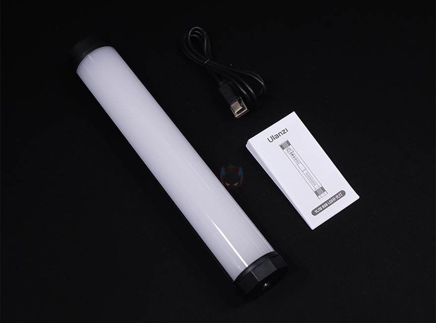 Ulanzi VL110 조명을 살펴보면, 디자인은 튜브형태의 스틱 디자인으로 길이는 약 240mm에 무게는 약 231g으로 스펙상의 무게에 오차범위내를 가졌습니다. 조명부분은 전면을 기준으로 약 120˚ 각도를 가졌으며, 길이와 무게를 고려했을 때 손에 들고다니기에도 큰 무리가 없어서 휴대성도 갖추고 있죠. 참고로, 내부에는 화이트(White) LED가 총 44개, 옐로우(Yellow) LED가 44개, RGB LED가 22개 박혀있습니다.