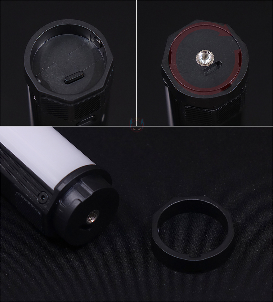스틱 양쪽에는 각각 연장 커넥터와 1/4인치 나사홀이 적용되어 있는데, 나사홀쪽 부분은 시계 방향으로 돌렸을 때, 테두리 프레임이 분리됩니다. 만약 VL110 조명은 2개이상 사용했을 시 연장하고 싶을 때 이렇게 프레임을 분리하고 나머지 제품 하나의 반대쪽과 결합을 해주면 2개를 연결해서 사용할 수 있죠. 연결법은 쉽기때문에 초보자도 어렵지 않게 할 수 있습니다. 물론, 전원은 각각에서 켜줘야 합니다. 그리고, 앞서 언급했듯이 판매 스토어에선 2가지 옵션 중 하나를 선택할 수 있는데, 필자의 경우는 삼각대가 포함된 팩키지 선택으로 제공되는 삼각대는 미니 삼각대로 기본 다리에서 한 번 더 길이 확장을 할 수 있으며, 1/4인치 볼트를 갖추고 있어서 바로 VL110과 결합해서 사용할 수 있습니다. 그리고, VL110 조명은 꼭 삼각대가 없어도 조명 내부에 마그네틱이 적용되어 있어서, 외부 스틸소재의 사물이 있다면 바로 부착해서 사용할 수 있습니다. 참고로 마그네틱은 후면 각진부분에 모두 적용되어 있습니다.