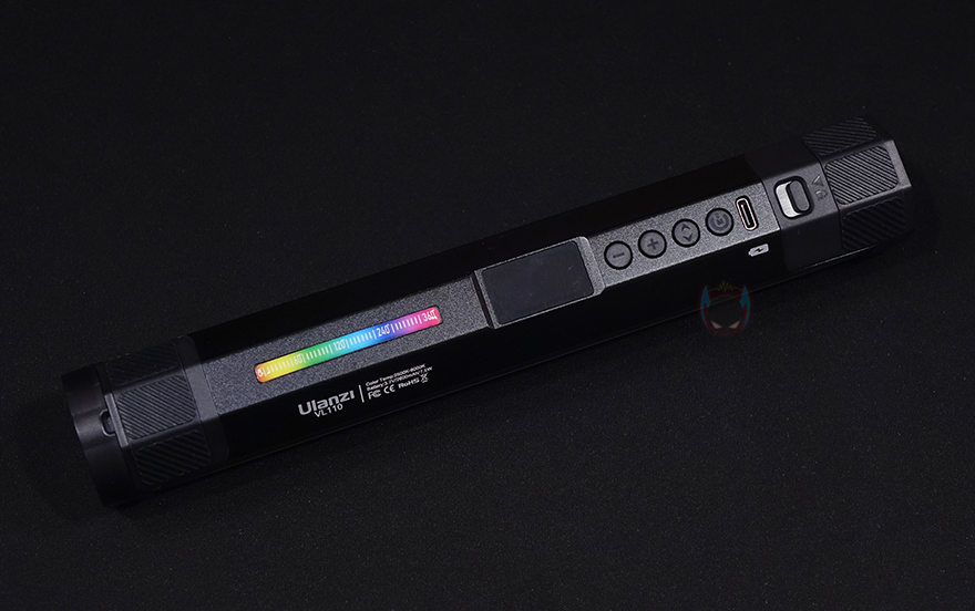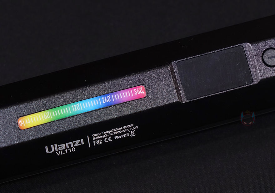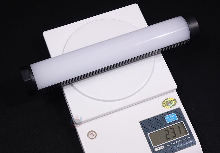 Ulanzi VL110 조명을 살펴보면, 디자인은 튜브형태의 스틱 디자인으로 길이는 약 240mm에 무게는 약 231g으로 스펙상의 무게에 오차범위내를 가졌습니다. 조명부분은 전면을 기준으로 약 120˚ 각도를 가졌으며, 길이와 무게를 고려했을 때 손에 들고다니기에도 큰 무리가 없어서 휴대성도 갖추고 있죠. 참고로, 내부에는 화이트(White) LED가 총 44개, 옐로우(Yellow) LED가 44개, RGB LED가 22개 박혀있습니다.
