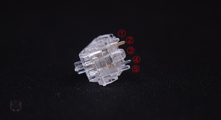 기계식 키보드의 스위치는 일종의 부품이자 액세서리 제품군이기때문에 보통 단순 비닐포장에 담기는 경우가 많은데, 카일(Kailh)은 그래도 보틀 같은곳에 포장을 해줍니다. 바로, Clione Limacina(클리오네 리마키나) 스위치를 살펴보면, 가장 먼저 눈에 들어오는 부분은 올-클리어(All-Clear) 하우징입니다. 상하부 모두 클리어 상태이고, 심지어 슬라이더부분까지 클리어죠. 그래서, 일반적인 스위치들과 달리 내부 구조도 간접적으로 노출이 됩니다. 핀(pin)은 접전과 기둥 포함해서 5pin 입니다.