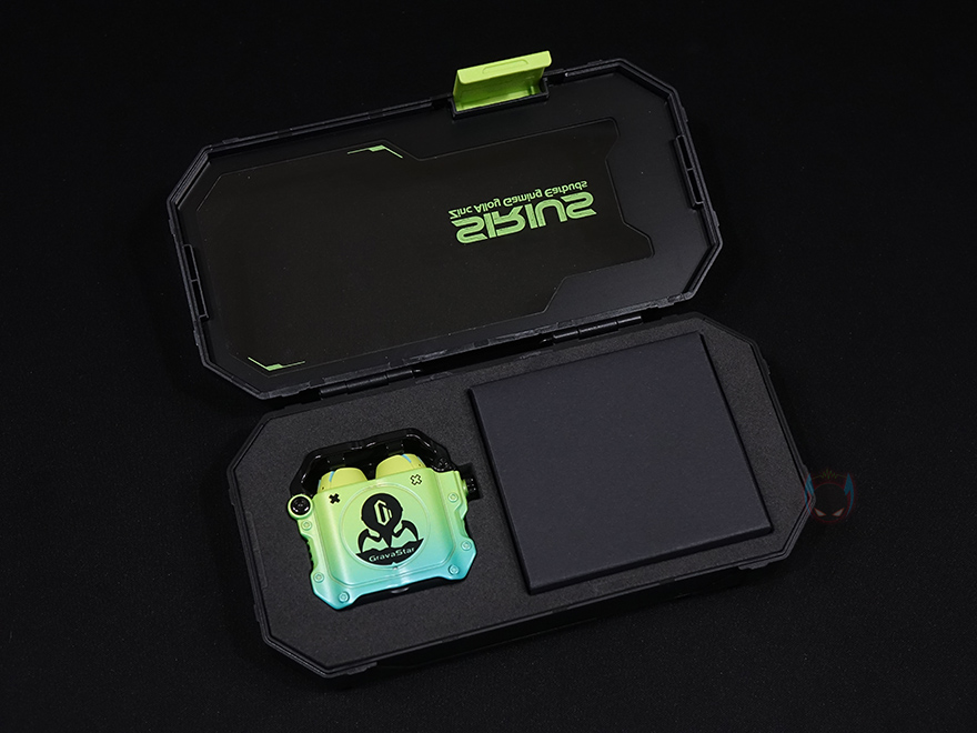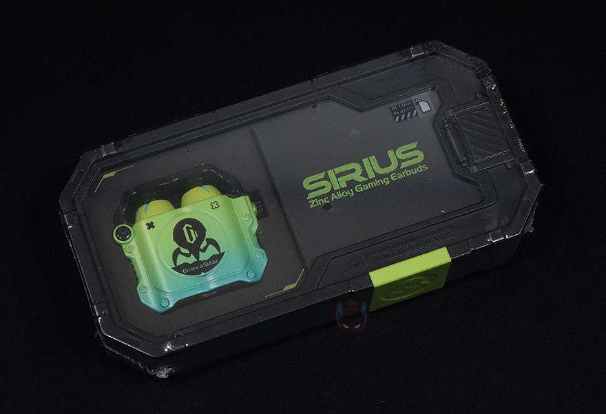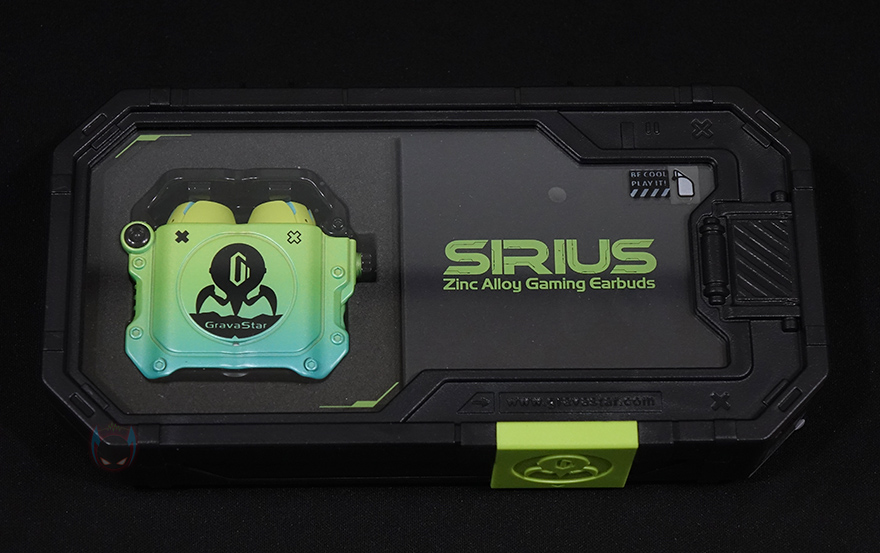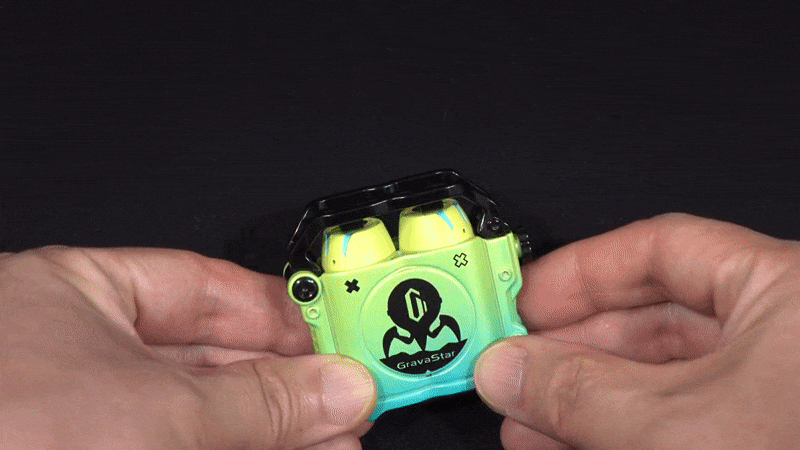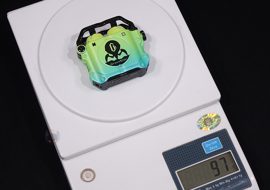 그럼, 그라바스타(Gravastar) 시리우스(SIRIUS) 무선 이어폰을 본격적으로 살펴보는데, 색상은 네온 그린(Neon Green), 스페이스 그레이(Space Gray) 2가지로 출시되었으며, 시리우스 프로(SIRIUS Pro) 모델에서도 잠깐 언급했듯이 둘의 가장 큰 차이점은 프로 모델 충전케이스에 오프너(Opener) 디자인이 추가되었다라는 점입니다. 그래서, 시리우스(SIRIUS)의 충전케이스는 기본에 충실했다할 수 있지만, 그대로 게이밍컨셉을 가졌기때문에 일반적인 무선 이어폰들의 충전케이스와는 차별성을 기본 모델에서부터 가지고 있었습니다. 무게는 프로 모델보다 약간 사이즈가 작기때문에 약 97g정도인데, 프로 모델에서 언급했듯이 시리우스(SIRIUS) 기본 모델에서부터 아연 합금(Zinc Alloy) 소재를 사용했기때문에 무게 역시 일반 무선이어폰들보다는 묵직한 느낌이죠.