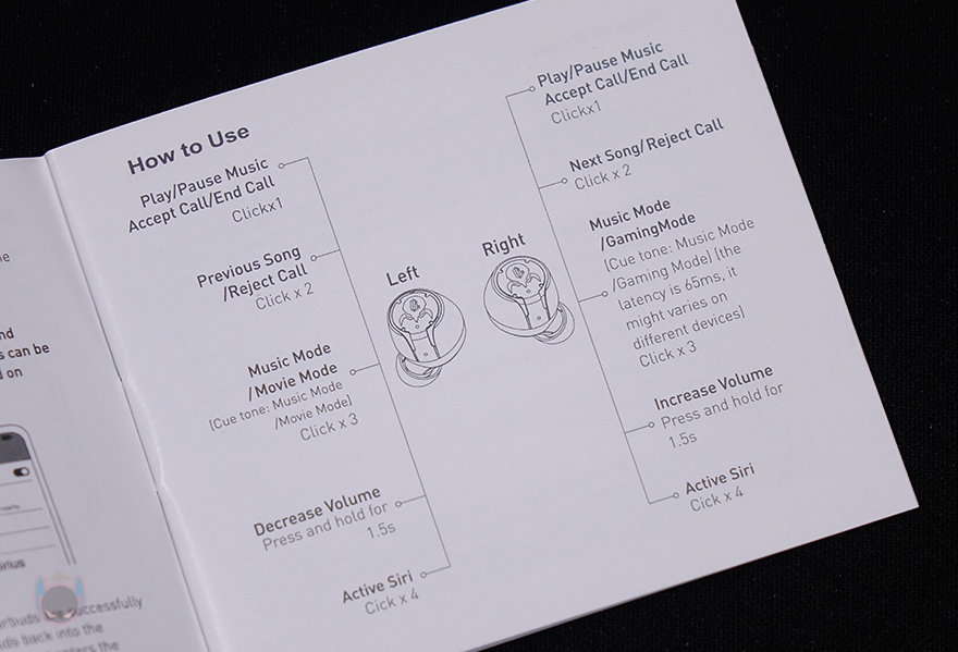 그럼, 그라바스타(Gravastar) 시리우스(SIRIUS) 무선 이어폰을 직접 사용해보는데, 무선 연결방식은 블루투스(Bluetooth) 5.2버전 지원으로 페어링은 프로 모델에서 언급했던 방법과 동일하게 충전 케이스에서 이어폰을 꺼내면 바로 페어링 모드가 시작되고, 모바일기기에서 블루투스 기기 검색을 통해 'Gravastar Sirius'가 검색되면 연결해줍니다. 그리고, 터치컨트롤도 프로 모델까지 그대로 동일하게 이어진 방식인데, 터치 1번은 좌우 상관없이 재생/일시정지, 왼쪽 이어폰 터치 2번은 이전곡, 오른쪽 이어폰 터치 2번은 다음곡, 왼쪽 이어폰은 1.5초이상 대고 있으면 볼륨감소, 오른쪽 이어폰을 1.5초이상 대고 있으면 볼륨증가, 왼쪽 이어폰 3번 터치는 음악/영화(Music/Movie) 모드 전환, 오른쪽 이어폰 3번 터치는 음악/게임(Music/Gaming) 모드 전환이며, 마지막으로 좌우 구분없이 4번 터치는 애플 시리(Siri) 음성서비스 실행입니다. 물론, 안드로이드 모바일기기에선 구글 어시스턴트(Google Assistant)가 실행되죠.