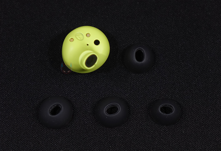 이제, 시리우스(SIRIUS) 무선 이어폰의 이어폰을 살펴보는데, 첫 개봉시에는 배터리 소모방지를 위해 비닐-탭이 부착되어 있습니다. 사용할 때는 탭을 제거해야하고, 측면으로 그라바스타 문구를 새겨놨으며, 기본 장착된 이어-팁을 포함해 총 4가지 사이즈별로 이어-팁이 제공되기 때문에 언제든지 사용자에게 맞는 이어-팁으로 교체해서 사용할 수 있습니다. 그리고, 내부에는 7.2mm 드라이버 유닛이 탑재되어 있으며, 이어폰에 각각 2개의 마이크가 적용되어 있죠. 참고로 모두 프로 모델에서도 그대로 유지되었던 부분입니다.