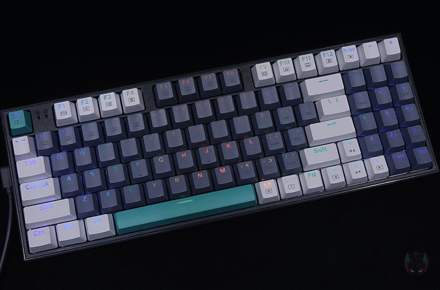 Machenike(메카닉) K500 기계식 키보드를 살펴보면, 일단 알리익스프레스 공식스토어에선 청축/갈축/적축 총 3가지 타입으로 판매가 되고 있으며, 적축은 나머지 축과 키보드 하우징과 키-캡 색상이 서로 반대입니다. 쉽게말해 K600 Gen1 처럼 2가지 색상으로 나왔다는거죠. 그리고, 앞서 잠깐 언급했듯이 총 94키 배열로 100키 배열의 K600 Gen1 키보드와 크기를 비교해보면, 맨 오른쪽에 배치되는 숫자키패드의 +/enter 키 자리가 빠진만큼 좀 더 줄어든 형태입니다. 좀 더 풀-배열의 기능은 유지하면서 텐키리스 사이즈에 가까워진거라 할 수 있죠.