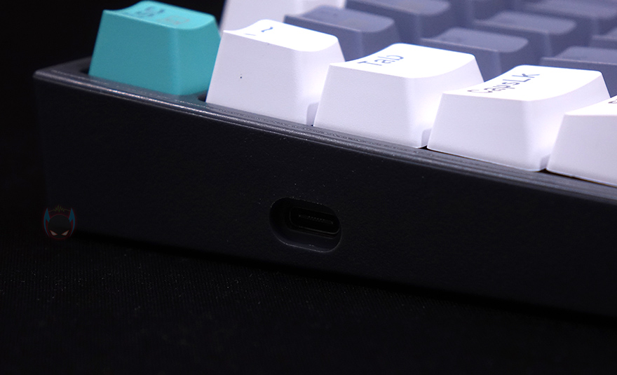 Machenike K500 기계식 키보드 역시 Fn(펑션)키 조합의 부가기능을 탑재하고 있는데, Fn키 바로 왼쪽에 배치된 Ctrl키와 Alt는 각각 RGB 색상변경과 모드변경이며, F1키는 미디어재생 프로그램 실행, F2~F4키는 볼륨조절 및 음소거, F5~F8키는 재생컨트롤, F9키는 이메일(e-mail), F10키는 인터넷(Internet), F11키는 윈도우 탐색기, F12키는 계산기(calculator)실행, PrintScreen키는 조명 On/Off, 상하(↑↓) 방향키는 밝기조절, 좌우(←→) 방향키는 모드속도조절, ESC키는 5초간 누르면 초기화 실행을 해줍니다. 이 밖에도 숫자1~5키까지는 프로파일(Profile), Insert/Del/Home/End/PgUp/PgDn 같은 풀-배열의 특수키들도 Fn키 조합으로 사용됩니다. 끝으로, 분리형 USB 전원케이블은 총 1.6m 길이에 신호손실 최소화를 위해 노이즈필터가 적용되어 있으며, USB Type-C to A 인터페이스를 가졌습니다.