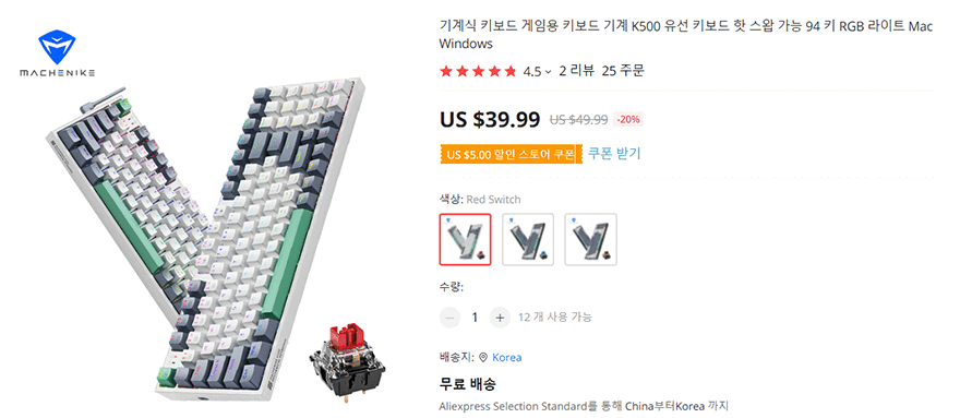 이번엔 Machenike K500 기계식 키보드를 타이핑해보는데, 앞서 언급한대로 스위치는 후아노(Huano)사이며, 청축/갈축/적축(Blue/Brown/Red) 3가지 타입으로 출시되었고, 필자의 제품은 갈축입니다. 타이핑을 해보면, 갈축 특유의 청축 같은 클릭 느낌과 청축보다는 소음이 낮은 체감을 할 수 있죠. 다른 갈축 스위치들과 큰 차이점은 없습니다.