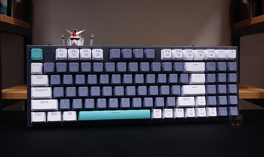 Machenike(메카닉) K500 기계식 키보드를 살펴보면, 일단 알리익스프레스 공식스토어에선 청축/갈축/적축 총 3가지 타입으로 판매가 되고 있으며, 적축은 나머지 축과 키보드 하우징과 키-캡 색상이 서로 반대입니다. 쉽게말해 K600 Gen1 처럼 2가지 색상으로 나왔다는거죠. 그리고, 앞서 잠깐 언급했듯이 총 94키 배열로 100키 배열의 K600 Gen1 키보드와 크기를 비교해보면, 맨 오른쪽에 배치되는 숫자키패드의 +/enter 키 자리가 빠진만큼 좀 더 줄어든 형태입니다. 좀 더 풀-배열의 기능은 유지하면서 텐키리스 사이즈에 가까워진거라 할 수 있죠.