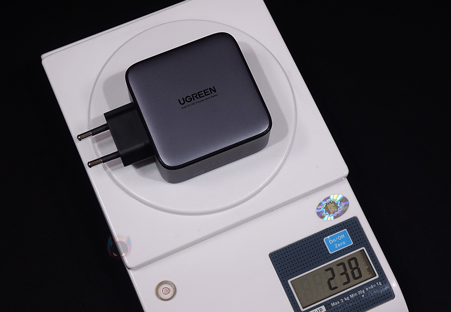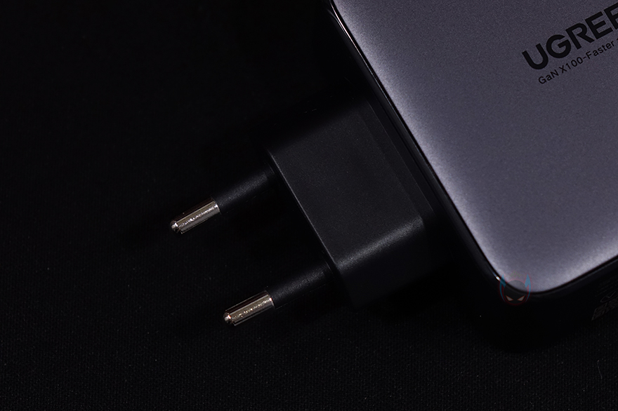 UGREEN 100W GaN 고속충전기를 살펴보면, 충전기 본체는 전체적으로 라운딩처리를 해서 다른 충전기들과 달리 곡선미가 강조되며, 메탈그레이 색상을 적용해 고급스러운 느낌도 줍니다. 한쪽에는 로고(Logo)를 새겨놨으며, 반대쪽에는 100W 최대 충전속도를 표기하고 있죠. 충전기의 무게는 약 240g으로 스마트폰보다는 약간 무거운 편이지만, 휴대성에는 부담이 없는 무게입니다. 그리고, 콘센트와 연결되는 플러그는 글로벌기준에 맞춰서 110V(US/UK)과 220V(EU) 각각 출시되었으며, 한국 같은경우에는 구매시 EU 플러그를 선택하면 됩니다. 참고로, 공식스토어에는 케이블 제공의 옵션까지 선택해서 구입할 수 있습니다.