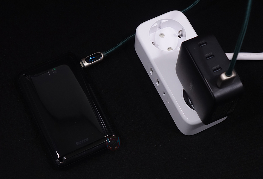 직접, UGREEN 100W GaN 고속충전기를 사용해보면, 일단 보조배터리를 통해 각 USB 포트의 고속충전을 확인해보는데 앞서 언급했듯이 USB Type-C 1번과 2번 포트는 최대 100W까지 지원합니다. 실제로 최대 65W 충전속도를 지원하는 보조배터리를 연결해봤는데, 근접속도로 충전되는 것을 확인할 수 있죠. 이번엔 최대 22.5W를 지원하는 USB Type-C 3번과 Type-A 포트에 각각 보조배터리를 연결해봤는데, 역시 근접속도로 충전되는 것을 확인할 수 있습니다. 참고로, 충전속도는 연결된 제품의 배터리 잔량에 따라 충전기에서 내장된 스마트 컨트롤-칩을 통해 최적의 전압 배분으로 전달되기때문에 속도차이는 항상 다를 수 있습니다.
