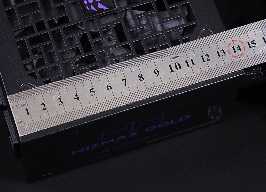 마이크로닉스 위즈맥스(WIZMAX) 파워서플라이를 살펴보면, 일단 본체의 경우 요즘 ATX파워 트랜드에 맞춰 140mm의 깊이 길이를 갖추고 있습니다. 최근 미들타워 PC케이스들이 깊이 길이가 짧아졌기때문에 이에 맞춘 길이라 할 수 있죠. 그리고, 상단에는 에어홀처리가 되어있는데, 디자인이 마치 창호문의 격자 같은 느낌을 줍니다. 최근에 마이크로닉스가 이런 디자인의 PC케이스를 출시하기도 했죠. 그리고, 내부에는 120mm 팬이 장착된 것을 간접적으로 확인할 수 있으며, 배기역할의 후면도 벌집모양의 에어홀처리가 되어 있습니다. 본체 측면에는 위즈맥스 로고를 새겨놨으며, 밑바닥부분에는 해당모델의 기본사양 표기를 다시 확인할 수 있죠.