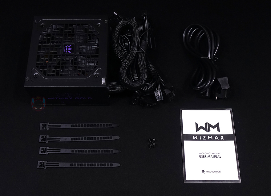 박스를 열어보면, 외부 충격방지를 위해 우레탄-폼 완충재를 사용하고 있으며, 파워서플라이 본체는 기본 비닐포장이 되어있습니다. 제품구성은 위즈맥스 파워서플라이, 전원케이블, 소량의 길이조절 케이블타이, 장착에 필요한 스크류, 제품설명서로 이루어져 있죠.