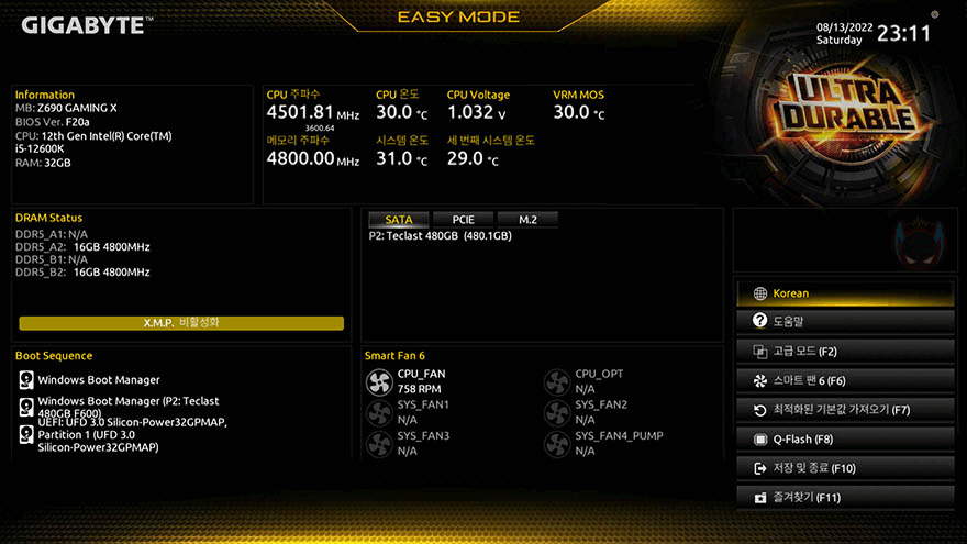작년 인텔은 차세대 규격을 지원하는 12세대 CPU '엘더 레이크'를 출시했죠. 그리고, 이를 지원하는 새 칩셋 600시리즈 칩셋 메인보드도 각 제조사들이 출시를 했습니다. 특히, 인텔 12세대부터는 차세대 메모리 DDR5를 지원하기 때문에 600시리즈 메인보드에서도 DDR4와 DDR5로 나뉘어서 제품들이 나오고 있으며, 그중에서도 CPU와 메모리 둘 다 오버클럭을 고려하면 Z690 칩셋의 메인보드를 선택해야 합니다. 특히, Z690 메인보드 중 DDR5를 지원하는 제품들 중 현재 대표적인 가성비 메인보드가 바로 기가바이트 Z690 GAMING X 모델라 할수 있어서, 이번에 필자도 PC 업그레이드를 단행하면서 기가바이트 Z690 GAMING X를 선택했죠. 그럼, 직접 구입한 기가바이트 Z690 GAMING X 메인보드의 내돈내산 후기를 한 번 시작해보도록 하죠~