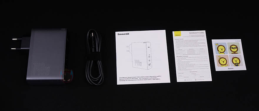 제품 포장은 이전 제품들과 마찬가지로 본제품인 충전기는 비닐 포장으로 되어있으며, 제품구성도 100W GaN2 Pro와 동일하게 충전기, USB 케이블, 제품설명서 및 보증서, 스티커 구성으로 되어 있습니다. 물론, 비닐포장을 벗기면, 충전기 자체에도 한번 더 보호비닐이 씌워져 있죠.