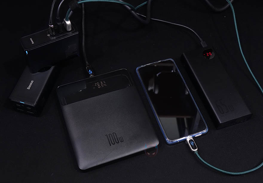 직접 베이스어스(Baseus) 140W GaN5 Pro 고속충전기를 사용해봤습니다. 3개의 포트에 보조배터리와 스마트폰을 모두 연결해봤는데, 앞서 언급한대로 3개의 포트를 모두 사용해도 1번인 'Type-C1' 포트는 최대 100W를 지원합니다. 실제로 자사의 65W 고속충전보조배터리가 보조배터리 최대 속도에 근접해서 충전되는 것을 확인할 수 있으며, 나머지 2개의 포트도 3개 모두 사용시 각각 20W, 18W로 충전지원하는데, 실제 연결된 스마트폰과 보조배터리에서 근접한 속도로 충전되는 것을 확인할 수 있죠. 또한, 140W면 현재 최대속도의 충전이기때문에, 이번 140W GaN5 Pro 고속충전기 내부에는 BCT(Baseus Cooling Technology)라는 자체개발 쿨링기술이 적용되어 고속충전에도 발열해결을 충분히 해주며, 보호장치도 8개를 내장하고 있어서 고속충전에 따른 불안감을 가질 필요가 없겠습니다.