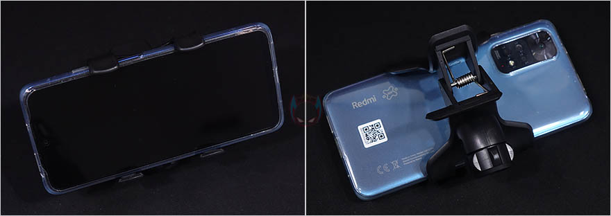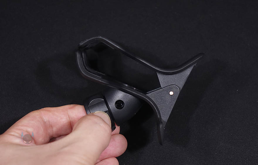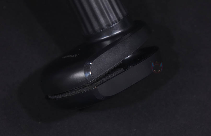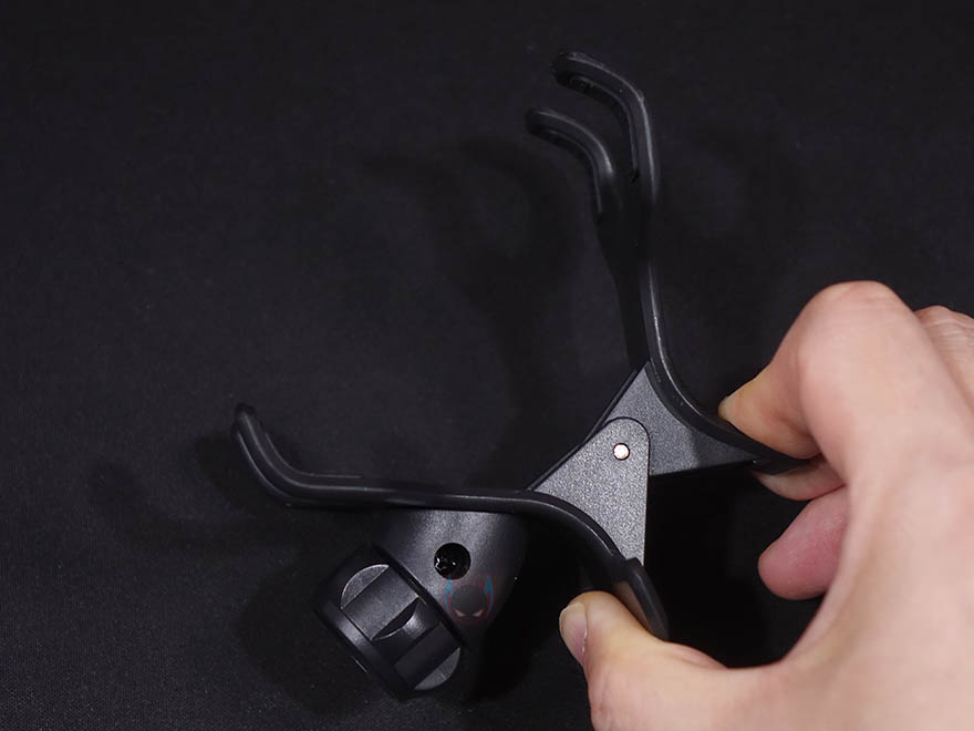 스마트폰을 고정해주는 집게부터 살펴보면, 전형적인 집게 형태로 손으로 쉽게 벌릴 수 있으며, 4.6~7.2인치 크기의 스마트폰 또는 태블릿PC까지 집어서 고정할 수 있습니다. 당연히 안쪽에는 접지력을 위해 패드도 부착되어 있죠. 생각보다 단단히 밀착해서 집고 있어서 흔들어도 쉽게 떨어지지 않아, 침대나 바닥에 누워서 사용할때 스마트폰이 떨어질 염려는 걱정하지 않아도 됩니다. 그리고, 클램프 암과 연결되는 부위는 볼-헤드 방식으로 집게쪽이 암핀이죠.