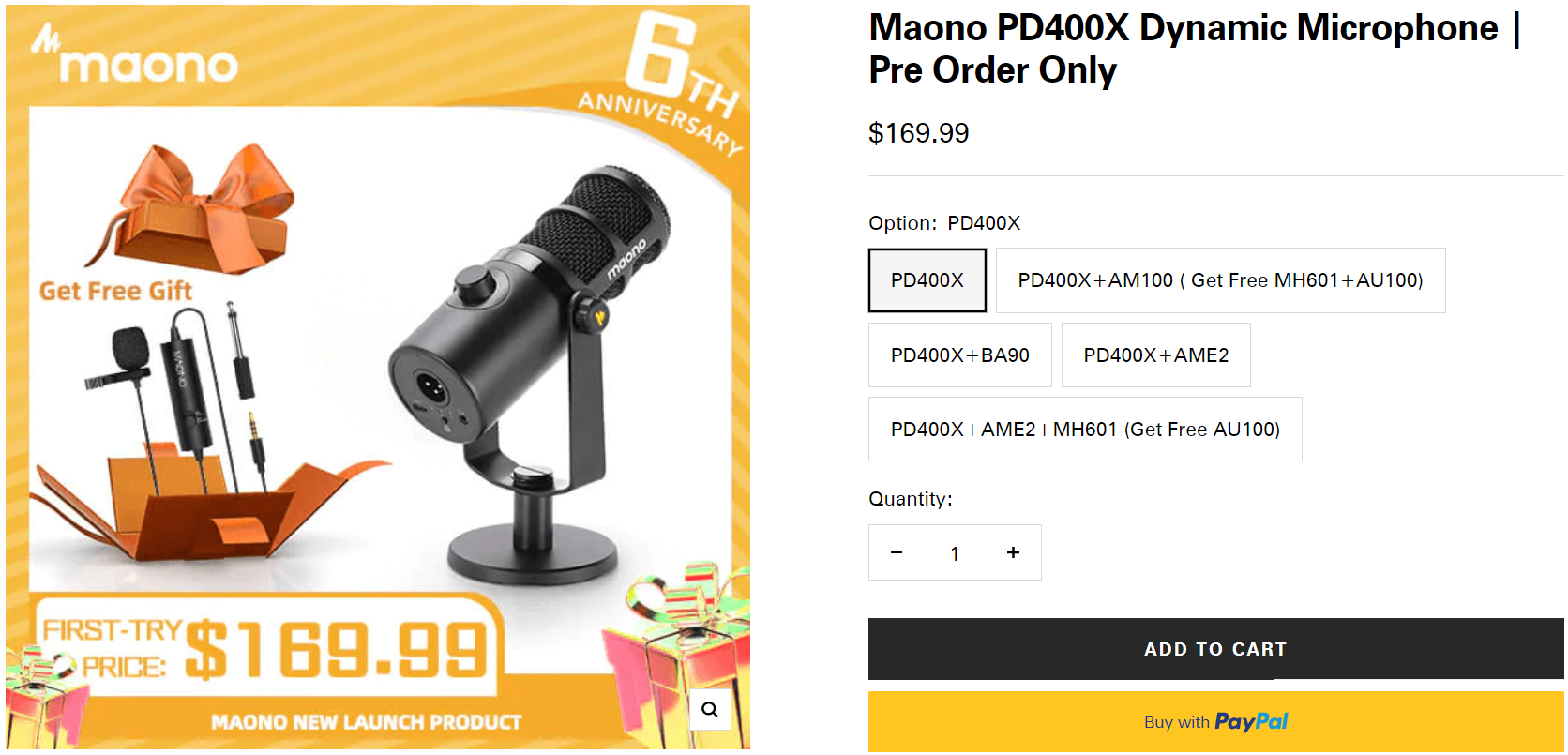 이번 마오노(MAONO) PD400X 마이크는 시작에서 언급했듯이 성공적인 펀딩을 이루면서 10월에 정식 출시를 앞두고 있습니다. 이미 홈페이지에선 사전예약판매(Pre Order)도 시작되고 있고, 최근 알리익스프레스 공식스토어에도 등록되었죠. 국내에선 피스커뮤를 통해 단독으로 살펴본, 마오노(MAONO) PD400X 마이크는 유튜브나 트위치, 또는 1인 미디어 방송을 하는 사용자들에게 사실상 가성비 끝판왕 마이크라 할 수 있습니다. 앞에서도 잠깐 언급했듯이 PD400X가 성공적인 펀딩을 이룰 수 있었던 이유도 바로 이런 가성비부분이라 할 수 있는데, USB/XLR 모두 갖춘 하이브리드 다이내믹 마이크(Hybrid Dynamic Microphone)가 드물다는 점과 슈어 MV7, 삼손 Q9U 등의 경쟁사 제품들에 비해 더 저렴한 가격을 가지면서도 PC와 모바일(Mobile) 환경에서 모두 기능들을 다룰 수 있게 갖추고 있는 점이 이 제품의 가장 큰 매력입니다. 쉽게 말해, 경쟁사 제품들은 1~2가지 기능이 빠져있는데, PD400X는 완벽하게 모든 기능을 다 갖추고 있다는 거죠. 또한, Rode, Blue Yeti 같은 USB만 지원하는 고급형 디지털 마이크와 비교해도 저렴합니다. PD400X는 마오노(MAONO)가 그동안 선보였던 어떤 마이크보다 가장 최상급으로 그리고 가장 가성비다운 제품임을 진심으로 보여주는 마이크라 할 수 있습니다. 보컬, 연주, 방송, 게이밍 어떤 환경에서도 충족시킬 수 있는 진짜 가성비 마이크를 원했다면, 출시를 앞둔 마오노 PD400X 마이크를 추천합니다.