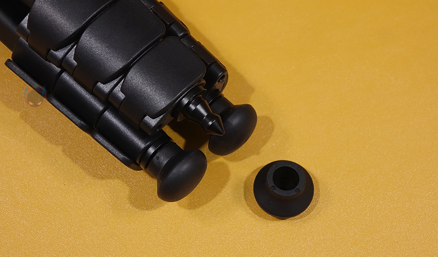 그리고, 각 삼각발에는 3개의 버클이 적용되어 높이조절을 할 수 있는데, 버클을 열면 다른 삼각대처럼 부드럽게 슬라이드식으로 길이 조절이 되며, 3개 모두 풀고 수직봉까지 세우면 삼각대 최대 높이는 160cm가 됩니다. 참고로 삼각발 버클 3개를 안 푼 상태에 기본 높이는 51cm, 1개만 푼 상태는 75cm, 2개를 푼 상태는 102cm이며, 수직봉을 세우지 않고 버클만 3개 모두 푼 상태는 131cm 높이입니다. 물론, 슬라이드 방식으로 자유롭게 높이조절을 할 수 있는거라 사용자가 원하는 높이에서도 언제든지 고정해서 사용할 수 있죠. 또한, 삼각발 받침대부분도 미끄럼방지와 바닥 접지력을 위해 고무커버도 씌워놨습니다.