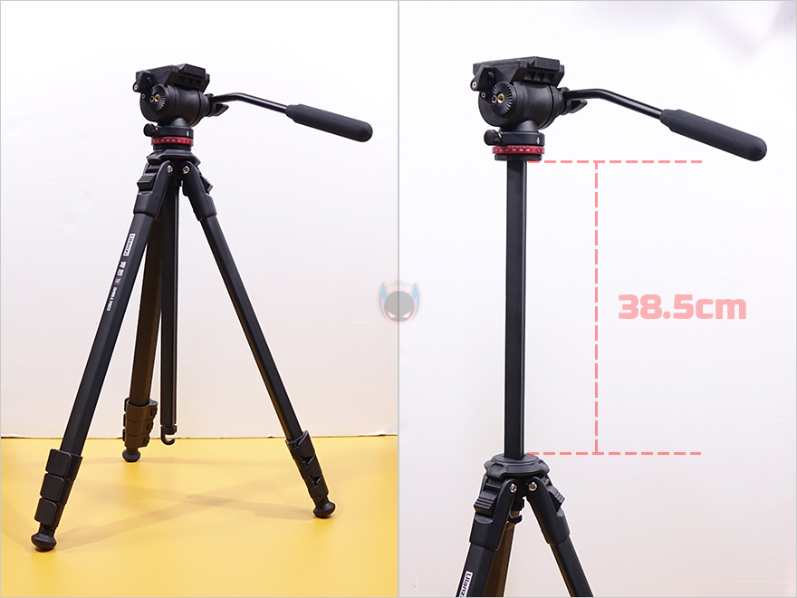 그리고, 삼각발 맨 윗부분 한 측면에는 버클이 적용되어 있는데, 바로 위아래로 높이를 조절하는 수직봉을 잠금/해제할 수 있는 버클로 수직봉은 최대 38.5cm까지 높일 수 있으며, 봉 모양은 삼각형 모양을 가졌습니다. 또한, 수직봉 맨 아래에 무게추를 달 수 있게 후크도 있는데, 후크를 풀면 수직봉을 완전리 분리할수도 있죠.