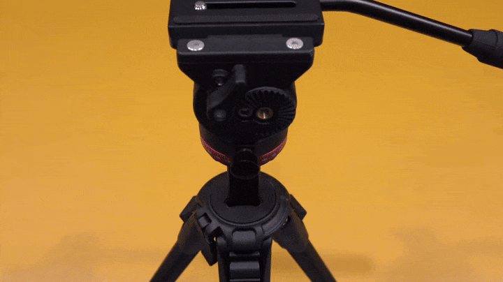 또한, 아래에 배치된 큰 핸드 스크류는 바로 손잡이 핸들-바를 상하 조절할 수 있게 해주는데, 손잡이부분에는 그립감을 위해 고무커버를 적용하고 있습니다. 그리고, 왼쪽 측면에 있는 레버가 하나 있는데, 바로 이 핸들-바를 사용해 카메라를 상하 각도조절 할 수 있죠. 최대 180˚까지 조절할 수 있습니다. 참고로, 핸들-바는 기본 오른쪽에 장착되어 있지만 스크류를 모두 풀면 분리가 가능하고, 반대쪽 왼쪽으로 위치변경할 수 있습니다. 그리고, 헤드 맨 아래 배치된 핸드 스큐를 좌우로 회전할 수 있게 해주는데, 최대 360˚까지 회전할 수 있습니다.