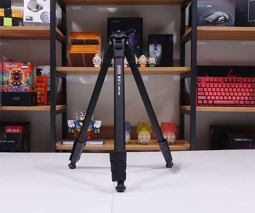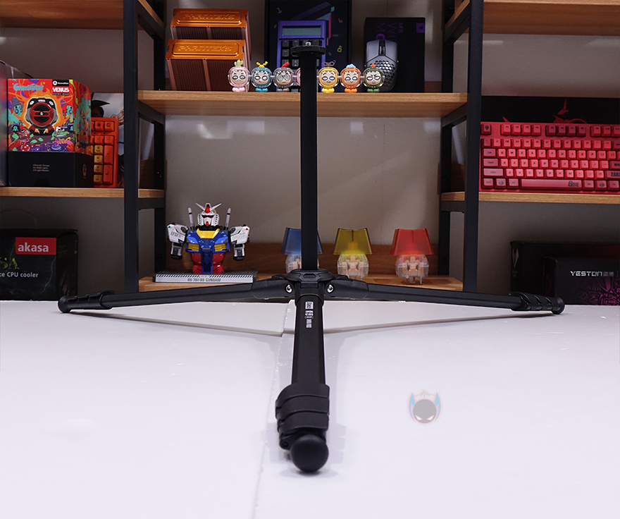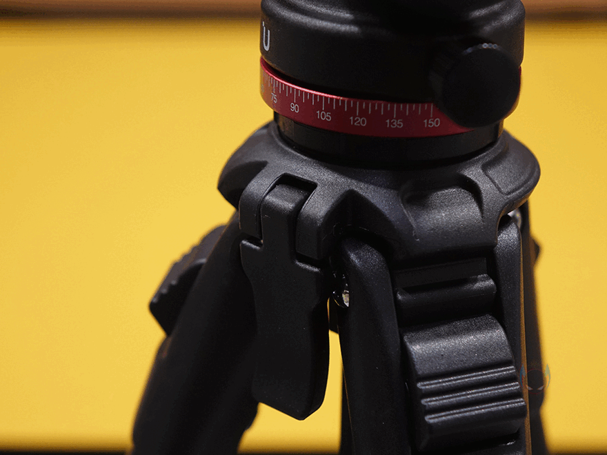 그리고, 각 삼각발에는 3개의 버클이 적용되어 높이조절을 할 수 있는데, 버클을 열면 다른 삼각대처럼 부드럽게 슬라이드식으로 길이 조절이 되며, 3개 모두 풀고 수직봉까지 세우면 삼각대 최대 높이는 160cm가 됩니다. 참고로 삼각발 버클 3개를 안 푼 상태에 기본 높이는 51cm, 1개만 푼 상태는 75cm, 2개를 푼 상태는 102cm이며, 수직봉을 세우지 않고 버클만 3개 모두 푼 상태는 131cm 높이입니다. 물론, 슬라이드 방식으로 자유롭게 높이조절을 할 수 있는거라 사용자가 원하는 높이에서도 언제든지 고정해서 사용할 수 있죠. 또한, 삼각발 받침대부분도 미끄럼방지와 바닥 접지력을 위해 고무커버도 씌워놨습니다.