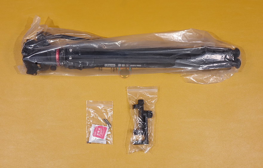 박스를 열어보면, 가장 먼저 이동시 휴대를 위해 전용 파우치 제공을 확인할 수 있습니다. 그리고, 파우치를 열어보면, 삼각대 및 구성품들이 모두 비닐 포장으로 처리된 것을 확인할 수 있죠. 구성품은 OMBRA VIDEO 여행용삼각대, 스마트폰을 장착할 수 있게 홀더, 육각렌치 제공으로 간단하게 이루어져 있습니다.