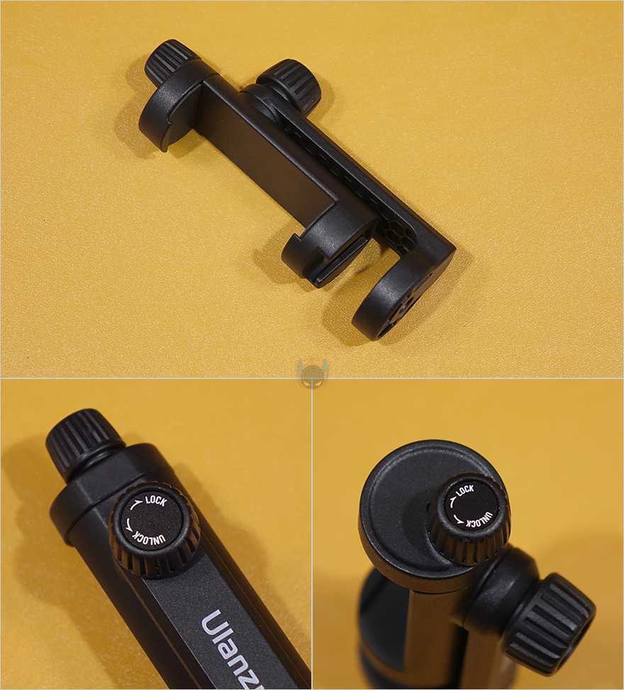 끝으로, 스마트폰을 장착할 수 있게 제공해주는 홀더는 일반적으로 흔히 보던 스프링방식의 홀더가 아닌 스크류 방식으로 후면과 상단에 각각 핸드-스크류가 적용되어 있는데, 후면 스크류를 풀면 홀더를 360˚ 회전시킬 수 있으며, 상단 스크류를 홀더 간격을 조절할 수 있습니다. 참고로, 간격 폭은 55~93mm 범위로 현재의 거의 모든 스마트폰은 장착이 됩니다.