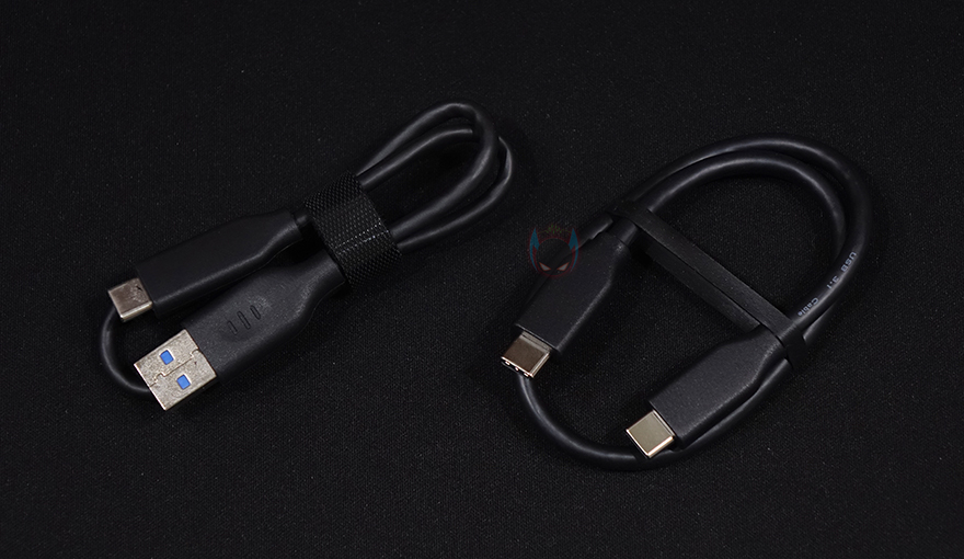 끝으로, USB 데이터 케이스(Data cable)은 2가지를 제공해주는데, 하나는 USB Type-C to A 인터페이스를 가졌으며, 나머지 하나는 둘 다 USB Type-C 인터페이스를 가졌습니다. 최대속도인 20 Gbps를 사용하고 싶다면 둘 다 Type-C인 케이블을 사용하면 되죠.