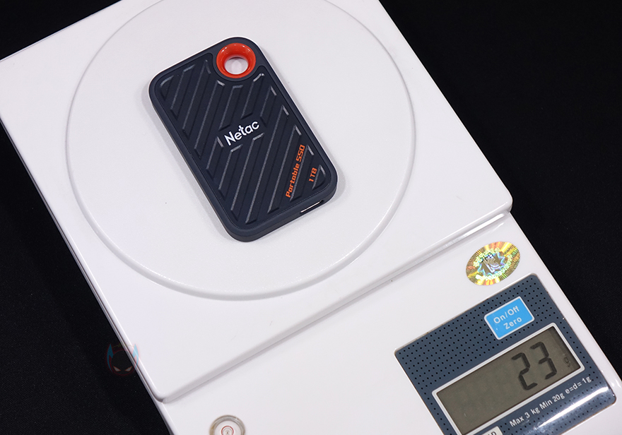 그럼, 본격적으로 Netac의 ZX20 외장 SSD(external SSD)를 살펴보는데, 크기는 71.5(L)x43.5(W)x8(H)mm로 실제로 보면 외장 SSD 제품치고 매우 작은 사이즈입니다. 실제로 현재 판매되고 있는 USB 3.2 Gen2x2(20Gbps) 외장 SSD 중에서는 가장 작은 사이즈라 할 수 있습니다. 무게도 23g으로 경쟁사 제품들을 통틀어 가장 가볍고, 두께도 8mm로 가장 슬림(Slim)하죠. 실제로 흔히 볼 수 있는 외장 SSD 제품들과 비교해보면 크기가 더욱 놀랍습니다.