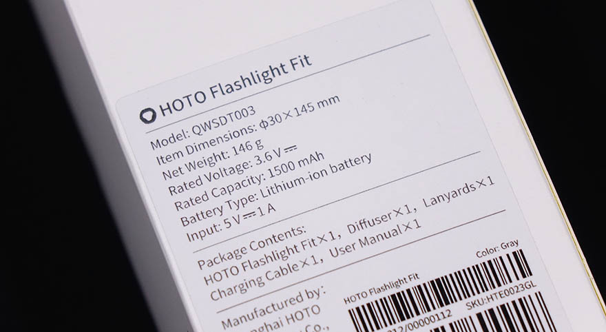 손전등 제품이기때문에 제품박스는 작습니다. 쉽게 말해, 휴대성이 강조된 제품이라는거죠. 실제로 박스 전면에는 브랜드 이름과 함께 제품 이미지를 담고 있는데 한눈에 봐도 한손에 그립이 되는 소형 손전등이라는걸 짐작할 수 있습니다. 그리고, 박스 후면에는 제품의 기본사양을 확인할 수 있는데, 크기(Size), 무게(Weight), 배터리용량, 충전전압, 제품 구성품 목록을 확인할 수 있죠. 박스를 열어보면, 포장은 외부 충격방지를 위해 우레탄-폼 소재를 사용했고, 비닐 포장도 적용되어 있습니다. 제품구성은 Flashlight Fit 손전등, 랜야드(Lanyard) 줄, 디퓨저(Diffuser), USB 충전케이블, 제품설명서로 이루어져 있죠.