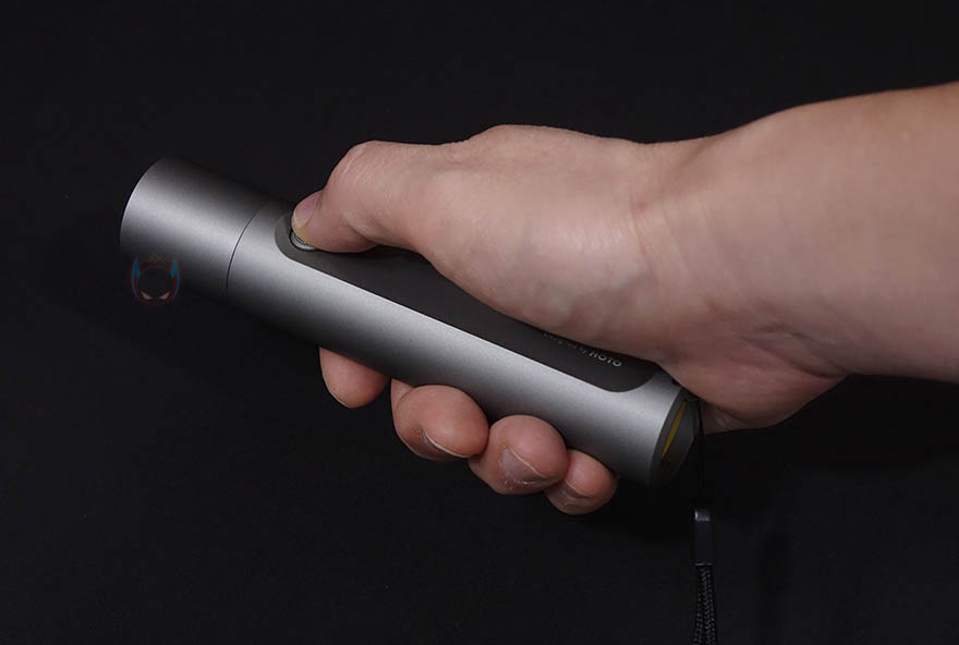 직접, HOTO(호토) Flashlight Fit(손전등 핏)을 사용해보면, 앞서 언급했듯이 그립은 한손에 편하게 잡을 수 있는 형태로 엄지손가락으로 버튼을 컨트롤할 수 있습니다. 특히, 버튼(Button) 같은경우에 다양한 기능을 갖추고 있는데, 일단 한 번씩 누를때마다 전원(Power) On/Off를 할 수 있으며, 켠 상태에서 버튼을 누르고 있으면 밝기조절(Brightness control)을 할 수 있습니다. 참고로, 밝기는 최소 20lm~ 최대 280lm(루멘)이며, 최소 밝기로는 24시간, 최대 밝기로는 3시간 사용할 수 있으며, 조명거리는 최소 밝기일때 10m, 최대 밝기일때 200m까지 도달합니다. 또한, 버튼을 연속해서 2번 누르면 S.O.S 모드로 빠르게 깜빡이며, 다시 2번 연속 누르면 천천히 깜빡이는 모드로 전환할 수 있습니다. 버튼 하나로 다양한 모드를 지원해주고 있어서 편리하다 할 수 있죠.