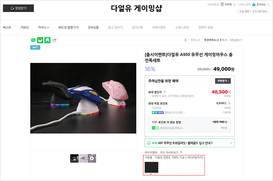 드디어 한국에 출시된 A+ 게이밍 마우스! - 다얼유 A950