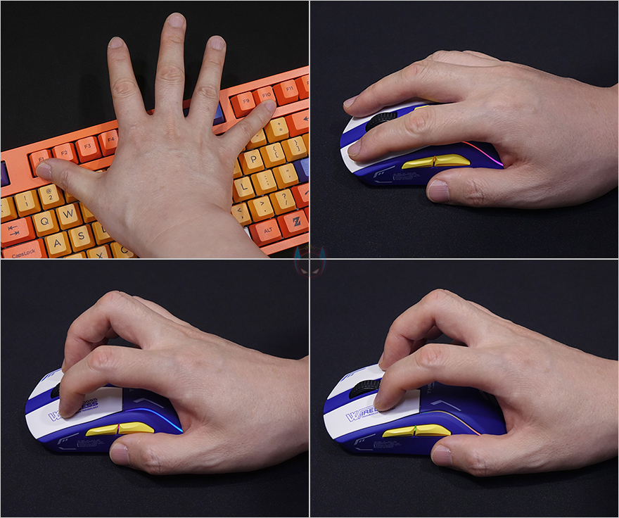 끝으로 그립 같은경우에는 A950 게이밍 마우스의 사이즈가 64x123x39mm로 필자의 경우 손 크기가 키보드 F기준으로 F10인데, A950을 그립 해보면 가장 무난한 그립은 기본 그립인 팜-그립이며, 클로 그립도 불편함 없이 사용할 수 있습니다. 또한, 측면 버튼의 사용 비중이 높지 않다면 핑거 그립 역시 큰 불편함이 없는데, 특히, 앞서 언급한 균일한 클릭감을 주기 위해 적용된 KBS 2.0 기술은 실제 그립에서도 손가락의 위치가 달라도 클릭되는 압력감이 균일한 느낌을 주어서 꽤 만족스러웠습니다. 참고로 그립을 좀 더 보강하고 싶다면, 앞서 구성품에서 확인했던 좌우 버튼과 측면에 패드를 부착하면 됩니다.