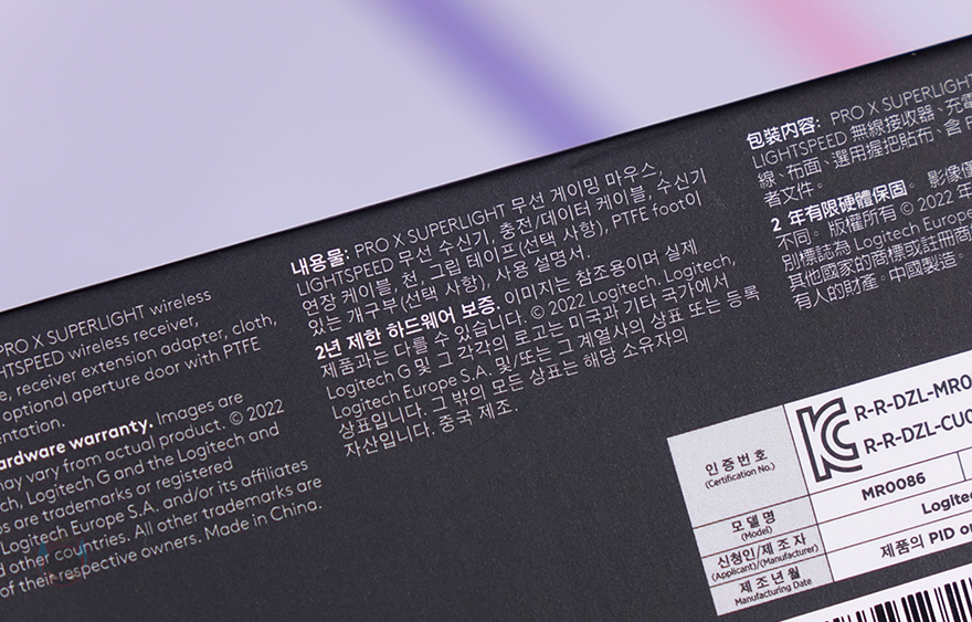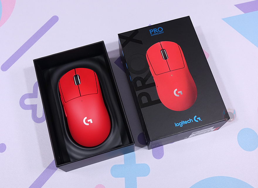 시작에서 잠깐 언급했듯이 이번에 출시한 로지텍 G PRO X SUPERLIGHT 레드 무선 게이밍 마우스는 작년에 출시했던 G PRO X SUPERLIGHT 모델에 레드 색상이 추가로 나온 겁니다. 그래서, 제품 패키지나 디자인은 먼저 다른 색상으로 나온 제품들과 동일하죠. 일단, 제품 패키지는 박스 형태로 전체 비닐밀봉처리가 되어있어서 소비자 입장에서 판매 제품에 신뢰를 가질 수 있으며, 박스 전면에는 해당 제품 컬러에 맞춘 제품 이미지를 담고 있습니다.