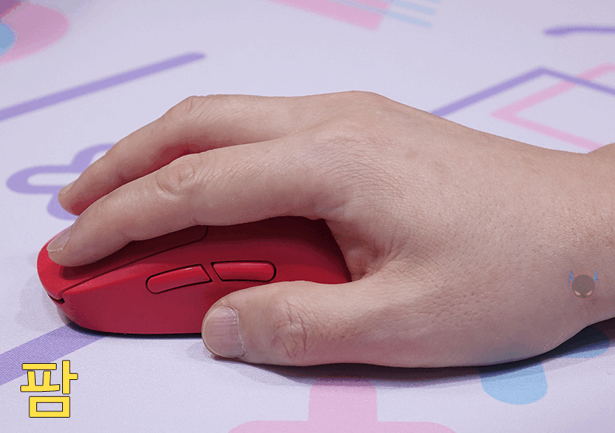 그립 같은 경우에는 필자의 손 크기가 키보드 F키 기준으로 F10인데, 로지텍 G PRO X SUPERLIGHT 레드 무선 게이밍 마우스 길이x높이가 125x40mm, 폭 63.5mm로 실제 그립을 해보면 기본 그립인 팜-그립이 가장 무난하고, 그대로 손가락만 세운 클로 그립도 무난했습니다. 또한, 핑거 그립 같은 경우에도 손이 뒤로 조금 이동해서, 측면 버튼과는 거리가 조금 멀어지지만, 기본 좌우 버튼은 분리 설계되어있기 때문에 클릭에는 큰 불편 없이 사용할 수 있었습니다. 가벼우면서 슬림한 마우스 형태이기 때문에 F10이상 손 크기면 그립에 상관없이 취향적으로 사용할 수 있겠습니다.