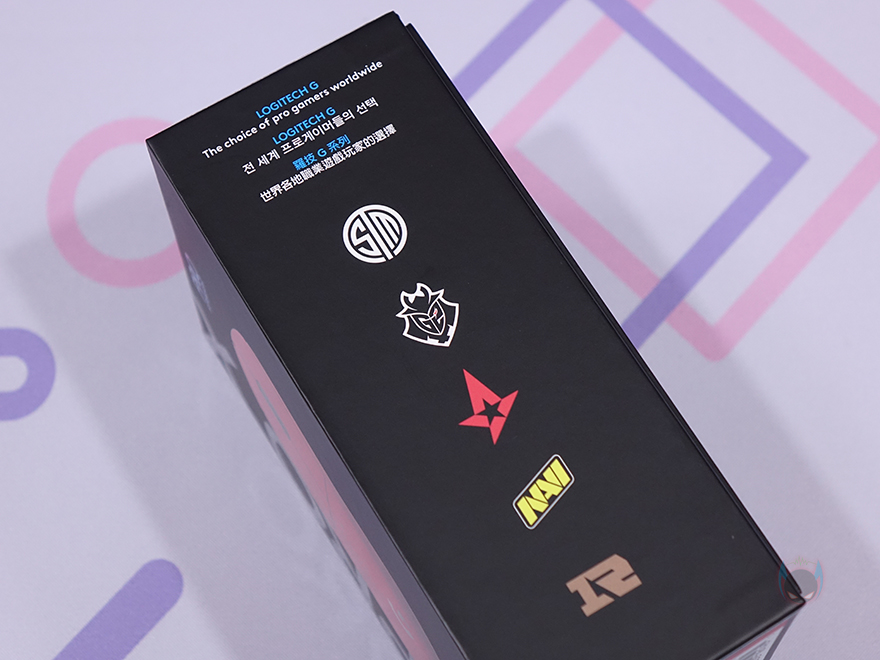 그리고, 이 제품은 로지텍의 게이밍 기어로 분류되는 로지텍 G 라인업의 제품으로 박스 측면에는 로지텍 G에서 후원하는 e-스포츠 프로게임단의 일부 엠블럼을 담고 있으며, 반대쪽 측면에는 제품의 기본 사양을 표기해놨습니다. 또한, 박스 후면에도 제품의 콘셉트 문구를 큼지막하게 새겨놨죠. 참고로, 제품 구성 목록이나 보증기간 안내는 제품 밑부분에 표기되어있습니다.