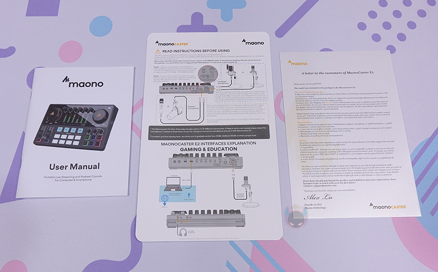 유튜브, 트위치 등의 플랫폼이 등장하면서 개인 방송 그러니깐 1인 미디어 사용자들이 많이 늘어났죠. 꼭 라이브 방송이 아니더라도 브이로그나 녹음, 녹화 등의 콘텐츠로 이용하는 사용자들도 많습니다. 일반적으로 이런 1인 미디어를 시작하게 되면 필수 장비인 마이크에만 신경 쓰는 경우가 대부분이죠. 하지만, 시간이 지나면 좀 더 좋은 품질의 방송이나 콘텐츠를 보여주기 위해서 오디오 인터페이스까지 갖추는 경우가 많습니다. 가성비 방송 장비 브랜드 MAONO(마오노) 역시 MAONOCASTER Series로 꾸준히 오디오 인터페이스 제품을 선보이고 있는데, 그중에서도 가장 최근 제품인 MAONOCASTER E2 모델은 무선 방식과 블루투스 지원 등으로 상위 모델 부럽지 않은 가성비를 갖추고 있죠. 그래서, 이번 시간에는 MAONO(마오노)의 MAONOCASTER E2 오디오 인터페이스를 한 번 살펴보도록 하겠습니다.