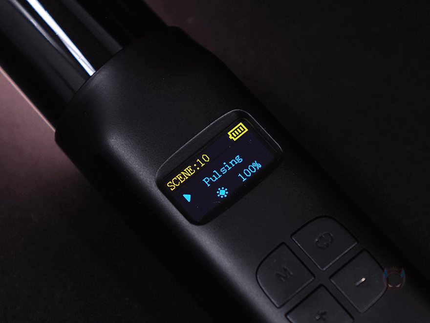 직접, Ulanzi(울란지) VL119 RGB 조명을 사용해봐야겠죠. 앞서 잠깐 언급했듯이 기능은 앞서 만났던 VL110과 동일합니다. 일단, 손잡이부분에 있는 M버튼을 통해서 크게 3가지 모드로 전환할 수 있는데, SCENE, CCT, RGB 모드입니다. SCENE는 쉽게 말해 RGB 조명모드인데, VL110과 마찬가지로 총 20가지 모드를 제공해주고 있으며, 밝기 조절을 할 수 있습니다. 그리고, CCT는 쉽게 말해 일반 조명의 색온도 조절로 범위는 역시 VL110과 동일하게 2500~9000K까지 지원합니다. 그래서, 전구색(2500K)부터 주광색(6500K)까지는 물론이고, 주광색보다 높은 밝기까지 설정할 수 있죠. 그리고, CCT에서도 밝기 조절을 할 수 있습니다. RGB는 말 그대로 색조(Hue)와 채도(Saturation)를 조절해서 조명 색을 조절하는데, 색조는 360, 채도는 100까지 조절할 수 있습니다. 물론, 밝기 조절도 가능하죠.