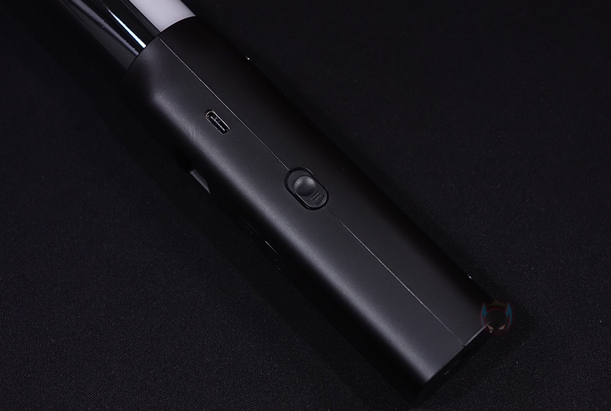 손잡이 부분에는 VL110과 마찬가지로 작동상태를 쉽게 확인할 수 있게 OLED 디스플레이를 적용하고 있으며, 그 아래에는 조작 버튼이 배치되어 있는데, 뒤에서 확인하겠지만, 사용법은 VL110과 동일합니다. M은 모드 전환 버튼이고, 그 옆에 화살표 버튼은 설정 선택, 아래 +/- 버튼은 값을 조절할 수 있죠. 그리고, 오른쪽 측면에는 전원 스위치와 함께 윗부분에 충전 케이블과 연결되는 USB Type-C 포트가 적용되어 있습니다. 그리고, 뒤쪽에는 줄고리를 할 수 있게 홀 처리가 적용되어 있으며, 손잡이 밑바닥 부분에는 삼각대와 연결할 수 있게 1/4인치 나사홀이 적용되어 있죠. 반대로 스틱 쪽 맨 상단에는 제품의 기본 사양 표기를 해놨습니다.