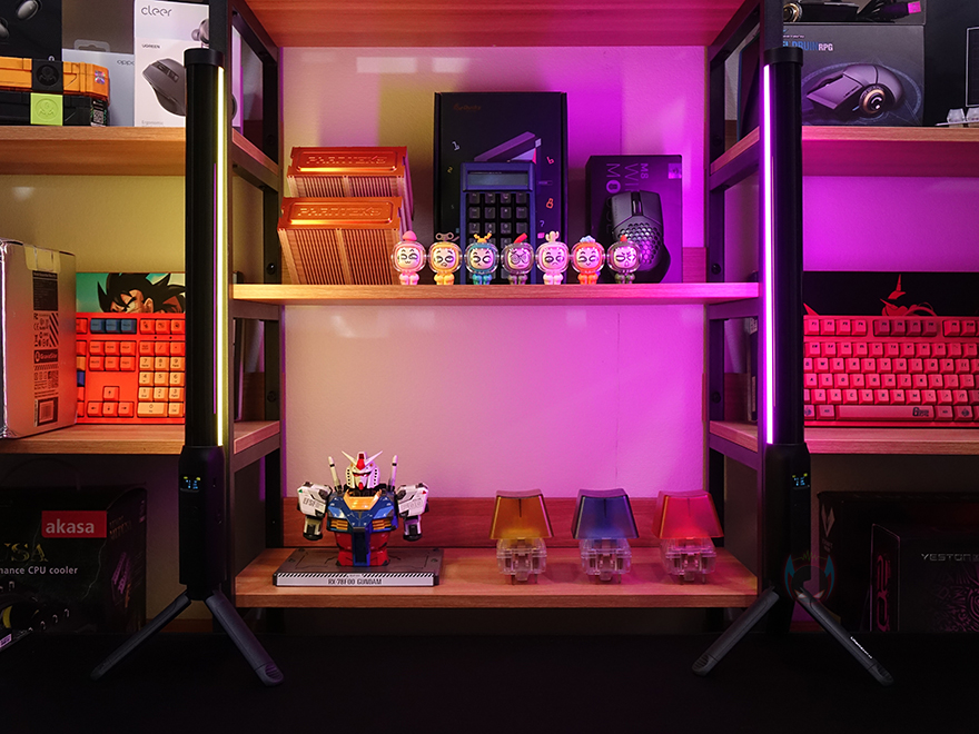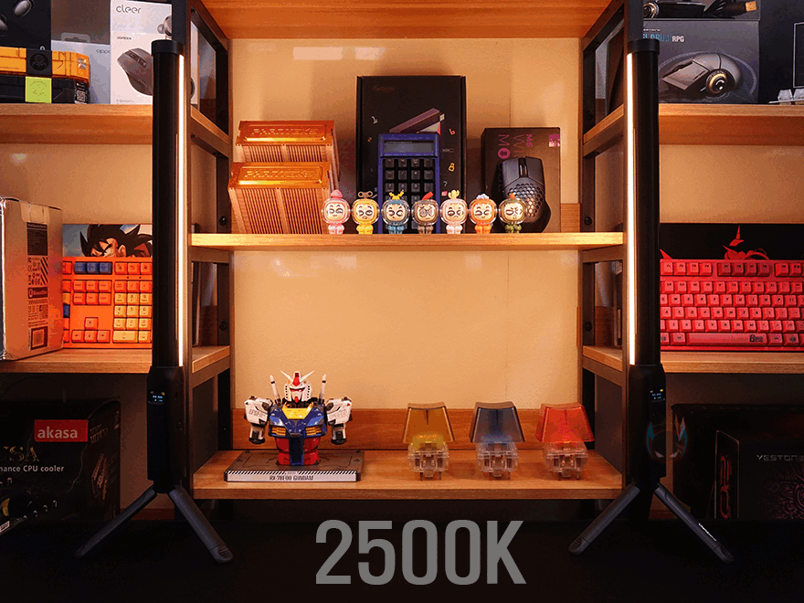 실제 각 모드에서의 조명효과를 확인해보면, 일단 기본적인 색온도의 조명 경우 전구색(2500K)과 주광색(6500K) 그리고, 이보다 높은 약간 파란빛이 도는 9000K까지 확실히 체감 차이를 보여주며, RGB 조명 같은 경우에도 단색부터 각 종 모드까지 다양한 컬러 분위기 연출을 보여줍니다. 특히, VL119를 2개 사용하면 좀 더 공간적인 부분에서 확실히 조명 효과를 볼 수 있다고 할 수 있죠.