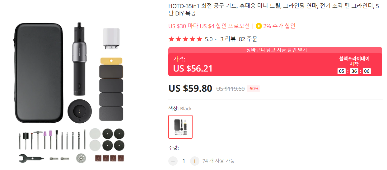 또한, 최근에 출시전부터 클라우드 펀딩으로 큰 인기를 받았던 35-in-1 소형 드릴 공구도 할인 제품으로 판매되고 있으니, 소형 DIY 가공이 취미라면 참고!