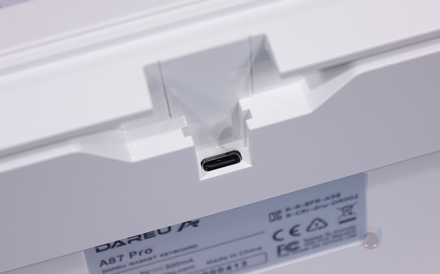 A87 Pro 유무선 3모드 키보드 측면에서 보면 타이핑에 최적화라 불리는 스텝-스컬처 2 단계배열을 갖추고 있으며, 키보드 밑바닥에는 테두리 주변으로 미끄럼방지 고무 패드가 부착되어 있으며, 유선 사용시 이용되는 분리형 USB 전원&충전케이블과 연결되는 USB Type-C 포트가 중앙에 배치되어 있고, 주변으로 케이블정리할 수 있는 홈-처리도 적용되어 있습니다. 높낮이조절 받침대는 A98 키보드와 마찬가지로 2단 조절이며, 끝으로 분리형 USB 전원&충전케이블은 1.8m 길이에 USB Type-C to A 인터페이스에 신호손실을 줄이도록 금도금처리와 노이즈필터가 적용되어 있죠.