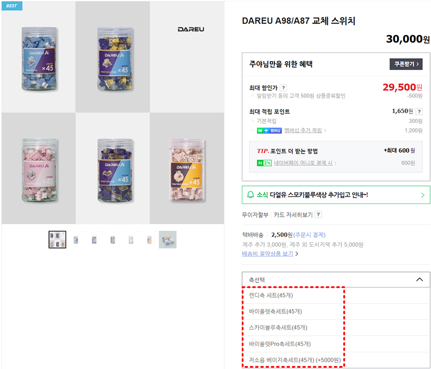 DAREU A98/A87 교체 스위치 : 다얼유 게이밍샵
