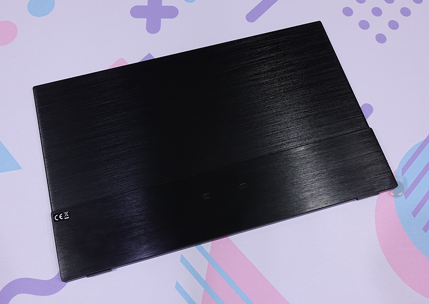 모니터 왼쪽 측면에는 버튼 및 포트가 배치되어 있는데, 위에서부터 전원버튼/메뉴(홈)/+/OK/- 버튼이 적용되어 있고, 간격을 좀 더 두고 맨 아래에는 3.5mm 오디오 포트가 적용되어 있습니다. 버튼은 일반적인 모니터에서 사용되는 버튼 그러니깐 OSD 메뉴 버튼이라고 생각하면 됩니다. 그리고, 오른쪽 측면에는 포트들이 배치되어 있는데, 위에서부터 미니 HDMI, USB Type-C 포트 2개, 마이크로 USB 포트순으로 적용되어 있고, 2개의 USB Type-C 포트는 위에는 썬더볼트 및 데이터 용도로 사용되고, 아래는 전원케이블과 연결되는 포트입니다. 물론, 제품 설명서에는 썬더볼트/데이터 호환 기기에 대한 목록도 표기해놨기 때문에 사용 전 참고하면 좋습니다. 또한, 모니터 후면에는 메탈 느낌처럼 헤어라인 효과를 적용하고 있으며, 아래에는 1W+1W의 2 채널 스피커가 적용되어 있습니다.