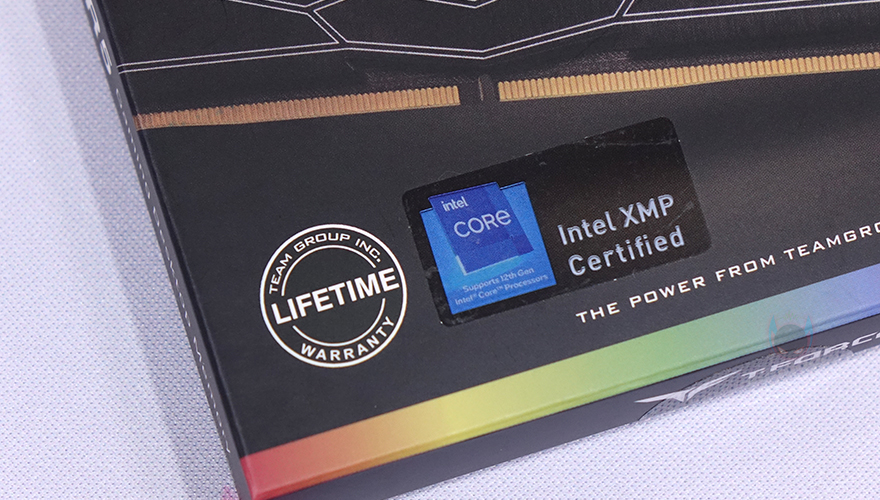 요즘 나오는 게이밍 메모리들은 대부분 제품 패키지를 박스로 적용하고 있죠. Teamgroup DELTA RGB DDR5 6400 CL40 메모리 역시 박스형태로 전면에는 모델명과 함께 메모리 클럭과 용량표기, 그리고 국내 2곳 유통사 중 하나인 아인스시스템의 정품 스티커를 확인할 수 있습니다. 그리고, 아래에는 제품 이미지를 볼 수 있는데, 화이트와 블랙 2가지 색상으로 출시했다는 걸 미리 알 수 있죠. 당연히 평생 보증이고, 인텔 XMP 3.0 적용 표기도 확인할 수 있습니다.