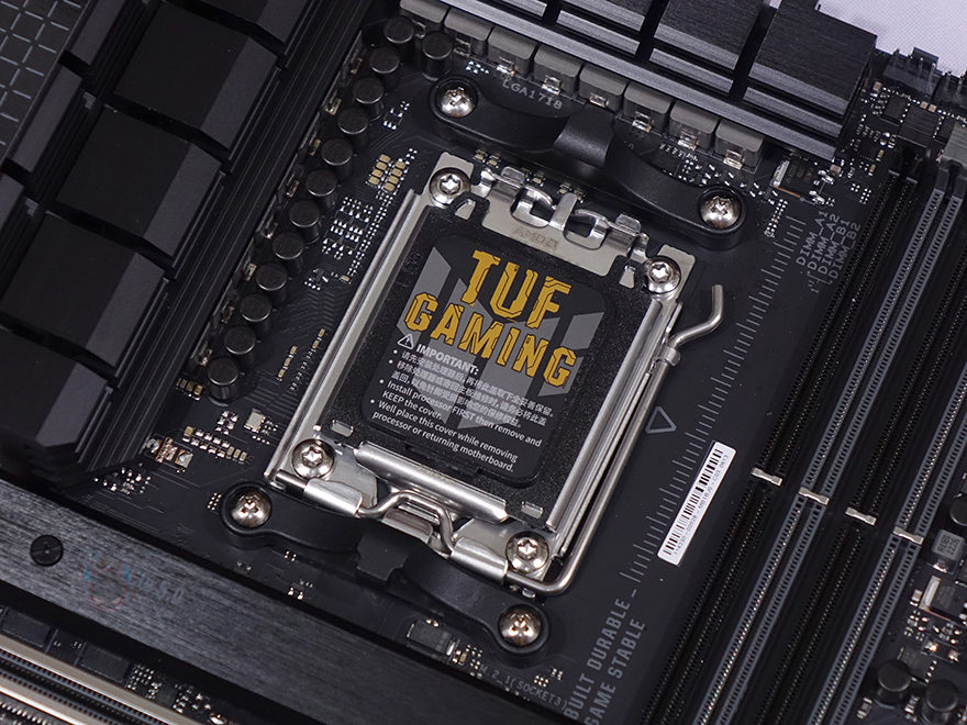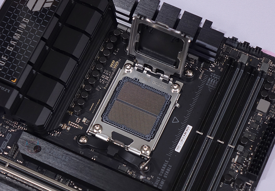 직접, ASUS TUF Gaming X670E-PLUS 메인보드를 사용해 보면, 일단 앞에서 여러 번 그리고 확인했듯이 CPU는 라이젠 7000 시리즈가 장착되는데, 소켓이 AM5로 바뀌는 동시에 타입도 인텔처럼 LGA타입으로 변경되었습니다. 그래서, 장착은 마치 인텔 CPU를 장착하는 것과 비슷하죠. AM5소켓이 바뀌어도 유일하게 자리를 유지하고 있는 것은 쿨러 리텐션 부분입니다.