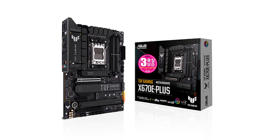 인텔은 작년부터 12세대 CPU 엘더레이크를 선보이면서 소켓과 메모리 지원 등 규격이 바뀌기 시작했습니다. 그리고, 올해 하반기에는 AMD도 라이젠 7000 시리즈 CPU를 출시하면서 드디어 AM4 소켓에서 벗어나 AM5 신규 소켓과 DDR5 메모리 지원을 시작했죠. 물론, 이런 지원을 위해서 메인보드 칩셋도 새롭게 등장했는데, 이전까지는 AMD 메인보드 칩셋이라면 X570, B550칩셋 같이 고급형과 중급형 한 종류씩 나왔죠. 하지만, 이번 라이젠 7000 시리즈부터는 고급형 X670E, X670, 중급형에는 B650E, B650 이렇게 두 종류씩 늘어났습니다. 고급형과 중급형 모두 각각 두 종류로 나오는 차이는 차세대 PCIe 5.0 지원 유무인데, X670E는 고급형에 최상위라 NVMe SSD와 그래픽카드 모두 PCIe 5.0을 지원하죠. 메인보드 하면 가장 글로벌 인기 브랜드 ASUS가 빠질 수 없고, 이런 ASUS에서도 X670E 칩셋의 다양한 메인보드 모델들이 이미 많이 나오고 있습니다. 그래서, 이번 시간에는 국내 정식 수입사 STCOM(http://stcom.co.kr/)을 통해 판매되고 있는 ASUS의 X670E 칩셋 메인보드 중 TUF Gaming 라인업에 있는 TUF Gaming X670E-PLUS 모델을 한 번 만나보도록 하겠습니다.