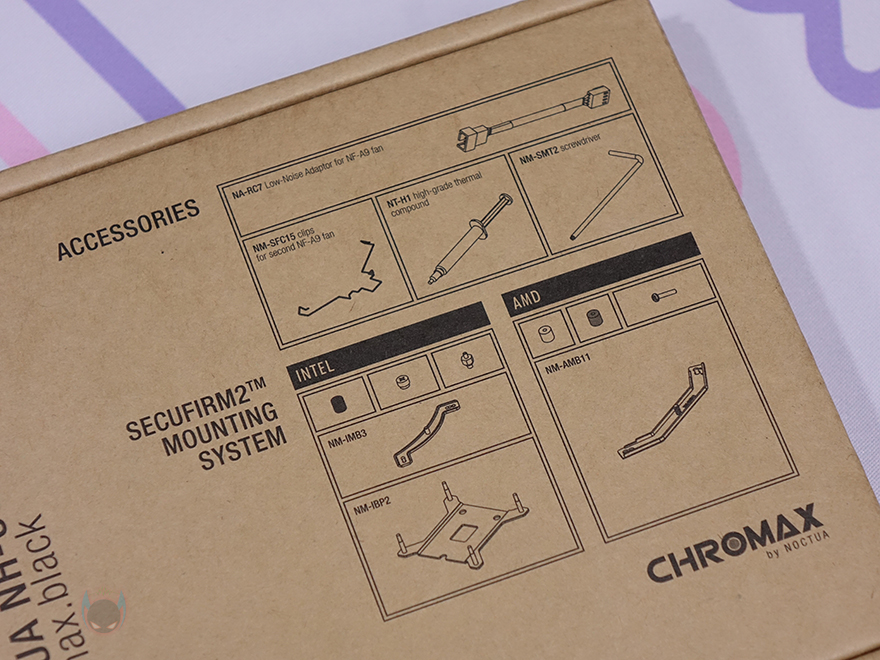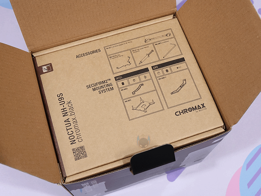 그리고, 녹투아는 포장이 잘 되어있는걸로도 유명한데, 박스를 열어보면 부속품들은 별도의 박스에 담겨 있으며, 부속품 박스에 어떤 부속품들이 들어있는지도 표기되어 있습니다. 물론, 부속품박스에 들어있는 부속품들 역시 포장이 잘 처리되어 있죠. 제품 구성은 NH-U9S chromax.black 쿨러, 인텔용 백플레이트/마운팅/와셔/볼트/너트, AMD용 마운팅/2가지 와셔/볼트, 추가 팬 클립, NT-H1 써멀컴파운드, 저소음 어댑터, +자 드라이버, 장착 설명서들로 이루어져 있습니다.