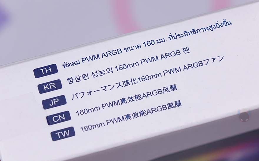 제품박스는 1개의 팬에 1박스가 적용되는 패키지형태로 박스 전면에 제품 이미지를 담고 있어서 팬 디자인은 미리 확인할 수 있습니다. 그리고, 모델명과 함께 Shark Force라는 문구도 확인할 수 있는데, 흔히 날개(Blade)에 지느러미 디자인이 적용된 팬들에 Shark라는 표현을 하죠. 또한, ARGB 팬이기 때문에 각 메인보드 제조사들의 RGB Sync 지원도 확인할 수 있으며, 박스 측면에는 한국어를 포함해 콘셉트 문구를 확인할 수 있죠.