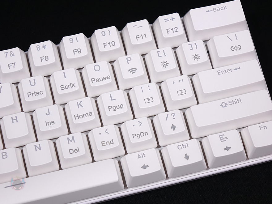 Blitzwolf BW-KB0 키보드 역시 미니키보드지만, Fn 키를 갖추면서 부가기능들을 지원해주고 있는데, 일단 숫자키들은 당연히 Fn키 조합으로 사용하면 F숫자키 기능이 되며, 특수키들 역시 일부 폰트 아래에 표기를 해놔서 쉽게 Fn키 조합으로 사용할 수 있습니다. 그리고, 방향키 역시 Fn키 조합으로 사용되고, 엔터키 주변으로는 RGB 조명과 관련된 기능들이 역시 키캡에 표기를 해놨으며, 무선 지원의 블루투스 디바이스 선택은 다른 키보들처럼 Q/W/E 3개의 키로 지원해주고 있습니다. 물론, 윈도우키도 잠금/해제는 기본이죠.